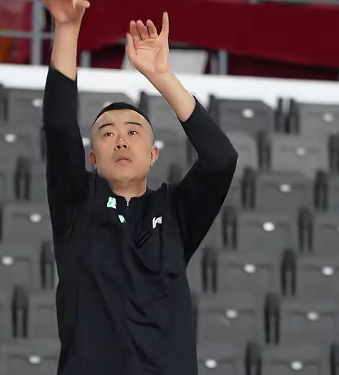 而一开始杨鸣就在检查篮筐高度,同时他还进行了试投,看看篮筐是不是合理,细节方面的处理还是没有任何问题的。