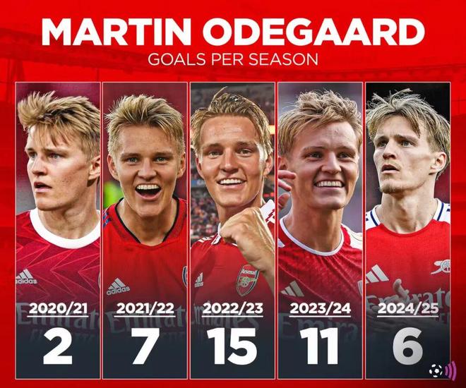 对厄德高和阿森纳而言,这都是双重打击。当年被皇马弃用,挪威人在伦敦找到归宿,一度是2022/23赛季英超进球最多(15球)的中场。但上赛季他仅以3球收官,本季至今未开张,伤病却接踵而至——这剧情是否似曾相识?没错,威尔希尔。两位跨时代的阿森纳金童,同是左脚,同具顶级视野,如今连“玻璃”属性都如出一辙。